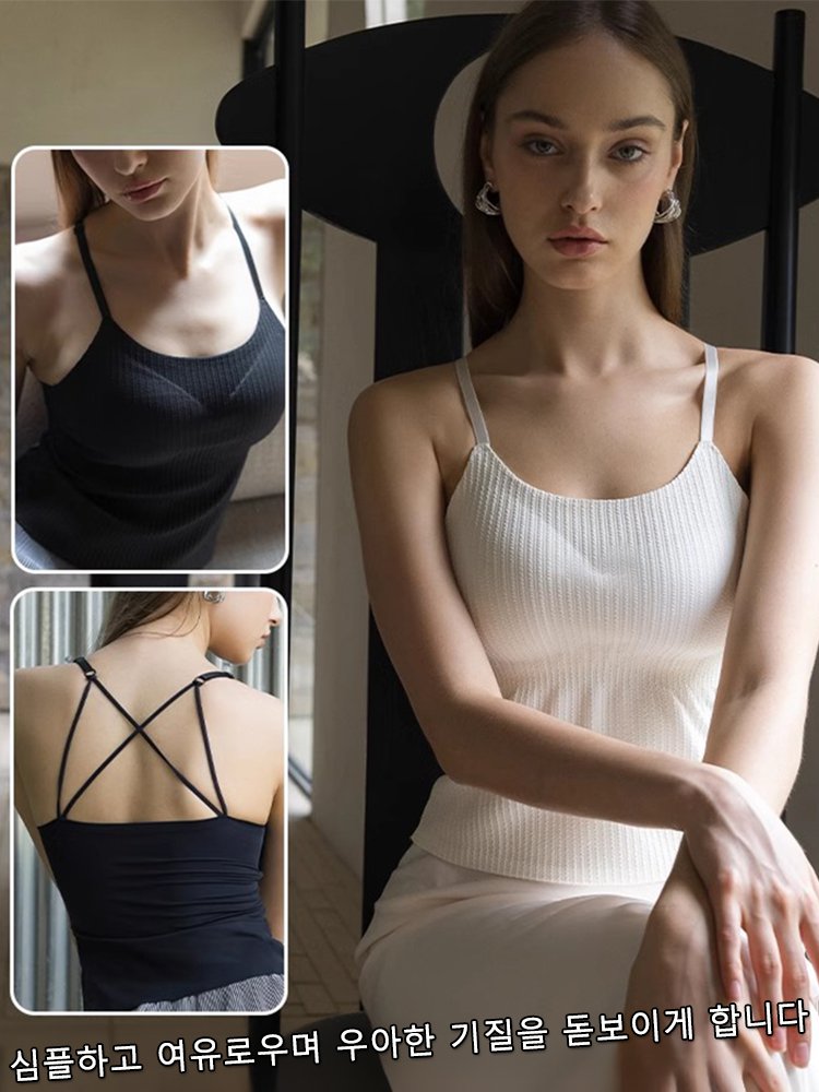 [뱃살 커버 및 슬리밍] 컵 있는 헴라인 끈 나시